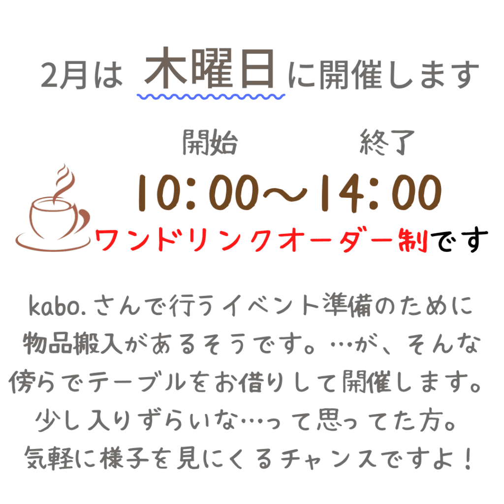 2月は通常開催です。ご来店予定の方は、早めのご来場でゆったりご相談ください。