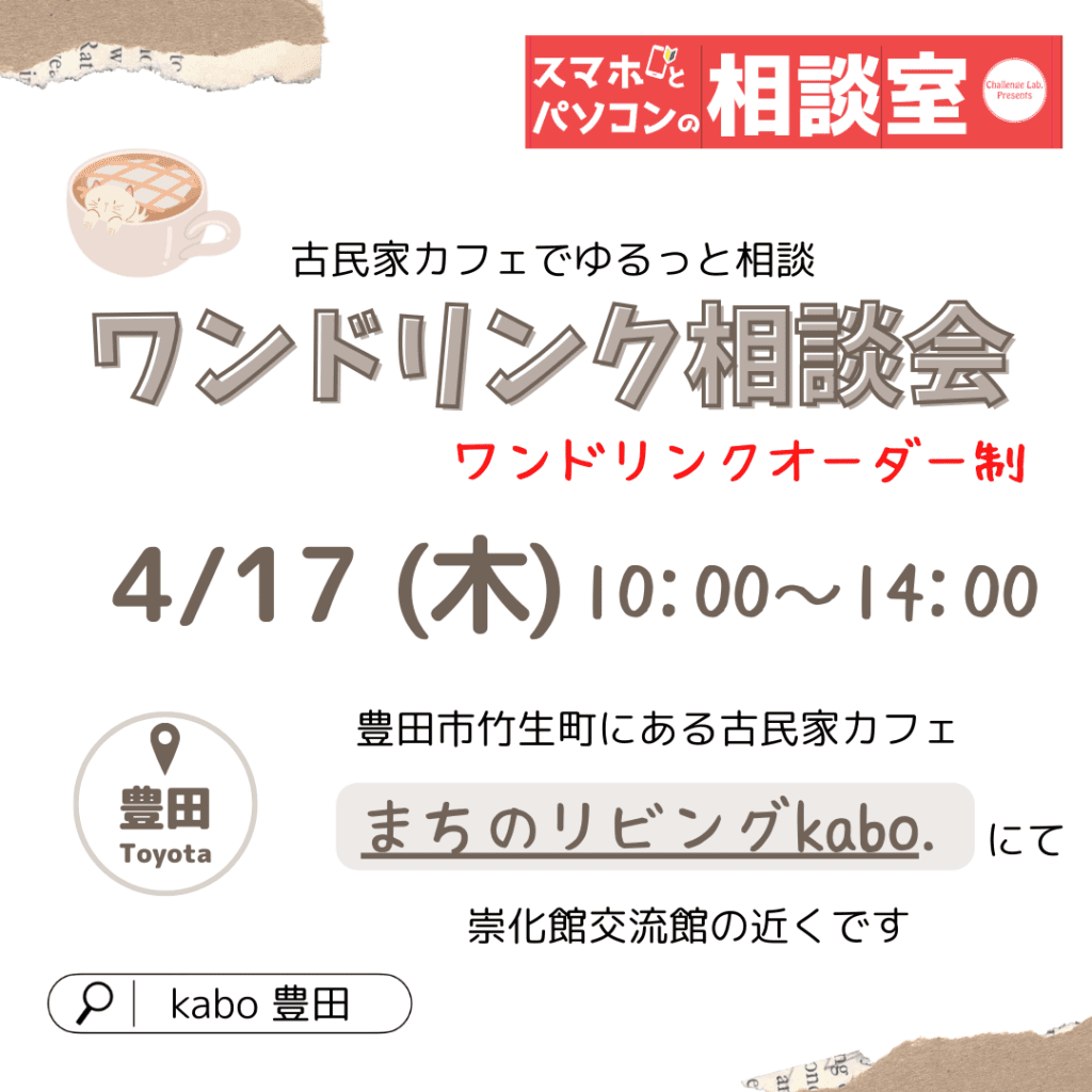 4月のワンドリンク相談会のお知らせ