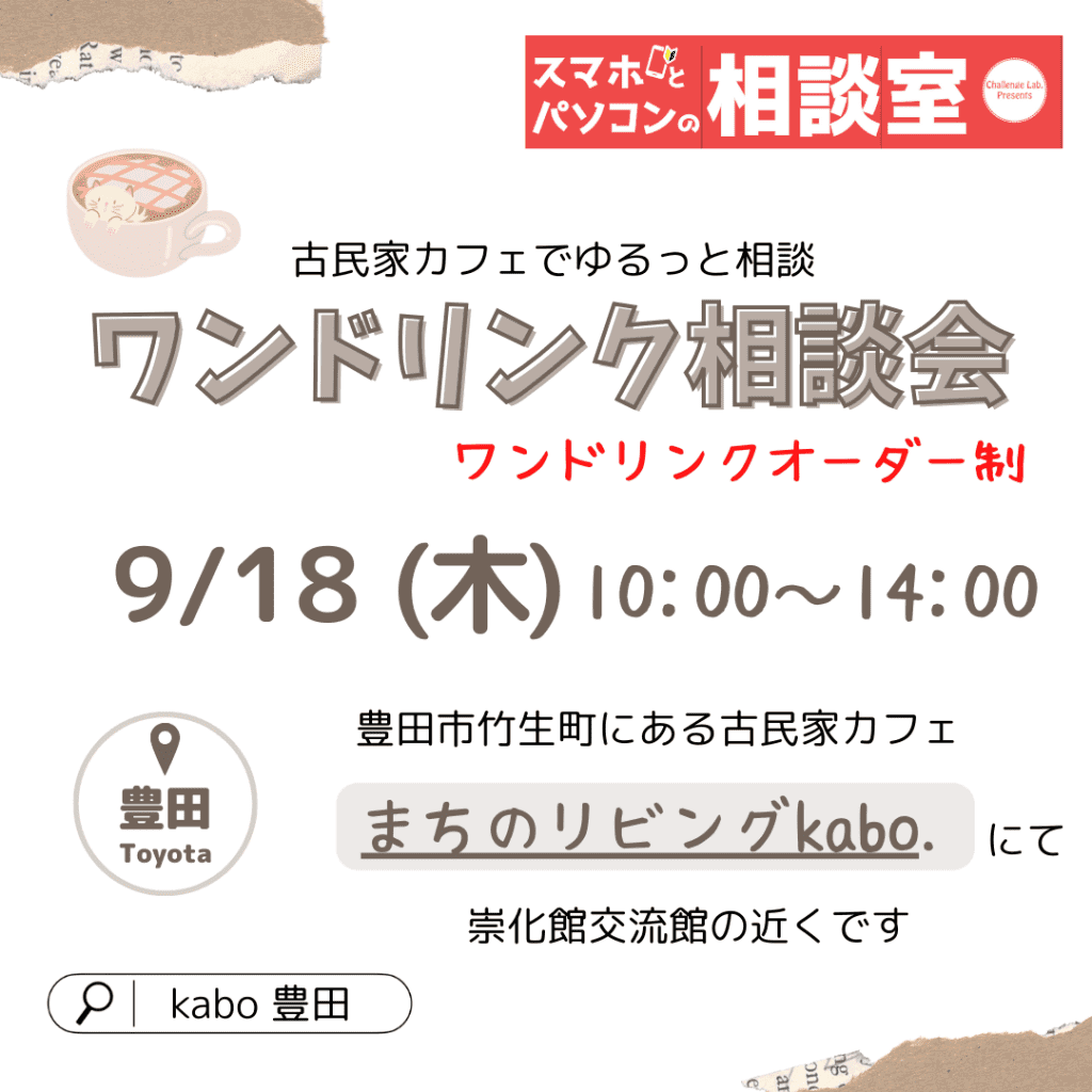 9月のワンドリンク相談会のお知らせ